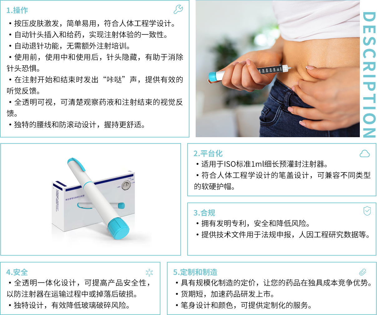 有效的自我注射治疗取决于患者准确和自信地进行注射,可承受的治疗成本降低患者的治疗负担。因此选择一款易用、安全和经济的自动注射笔对降低医疗成本,提高治疗质量变得十分关键。