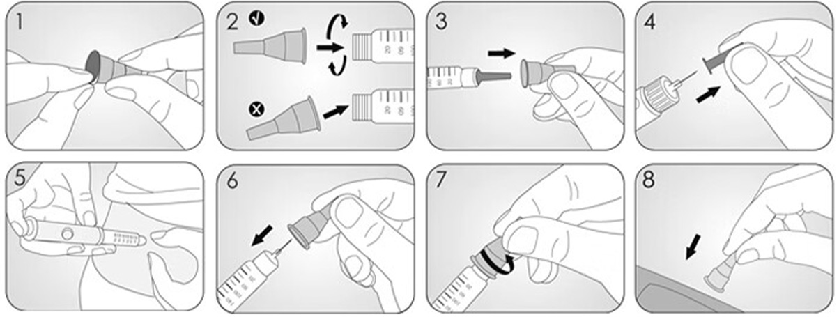 (2)将针座内末端针管对准笔芯,旋紧在胰岛素注射笔上;